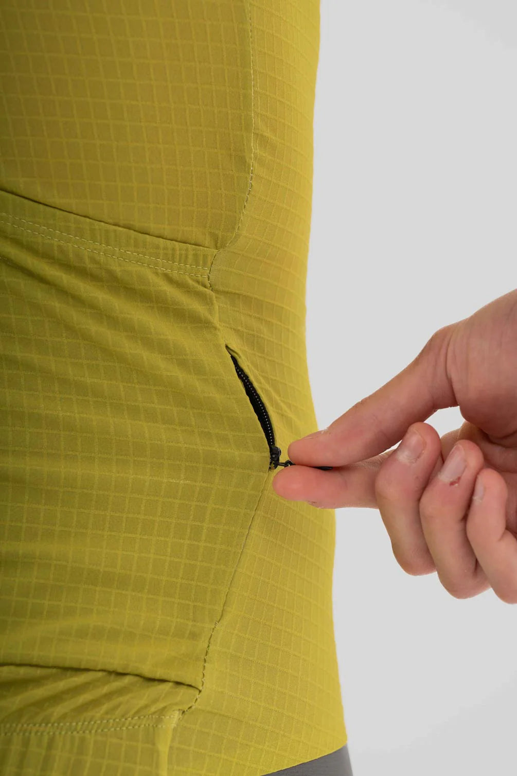La construcción con costuras mínimas y terminación bonding en la cintura proporciona una estética limpia y sin roces, mientras que la goma elástica siliconada en la parte trasera asegura un ajuste firme durante el pedaleo. Incorporan tres bolsillos traseros, incluyendo un cuarto bolsillo lateral con cremallera invisible, ideal para guardar objetos de valor; y una cremallera frontal YKK® invertida con bloqueo semiautomático para facilitar la ventilación en marcha.