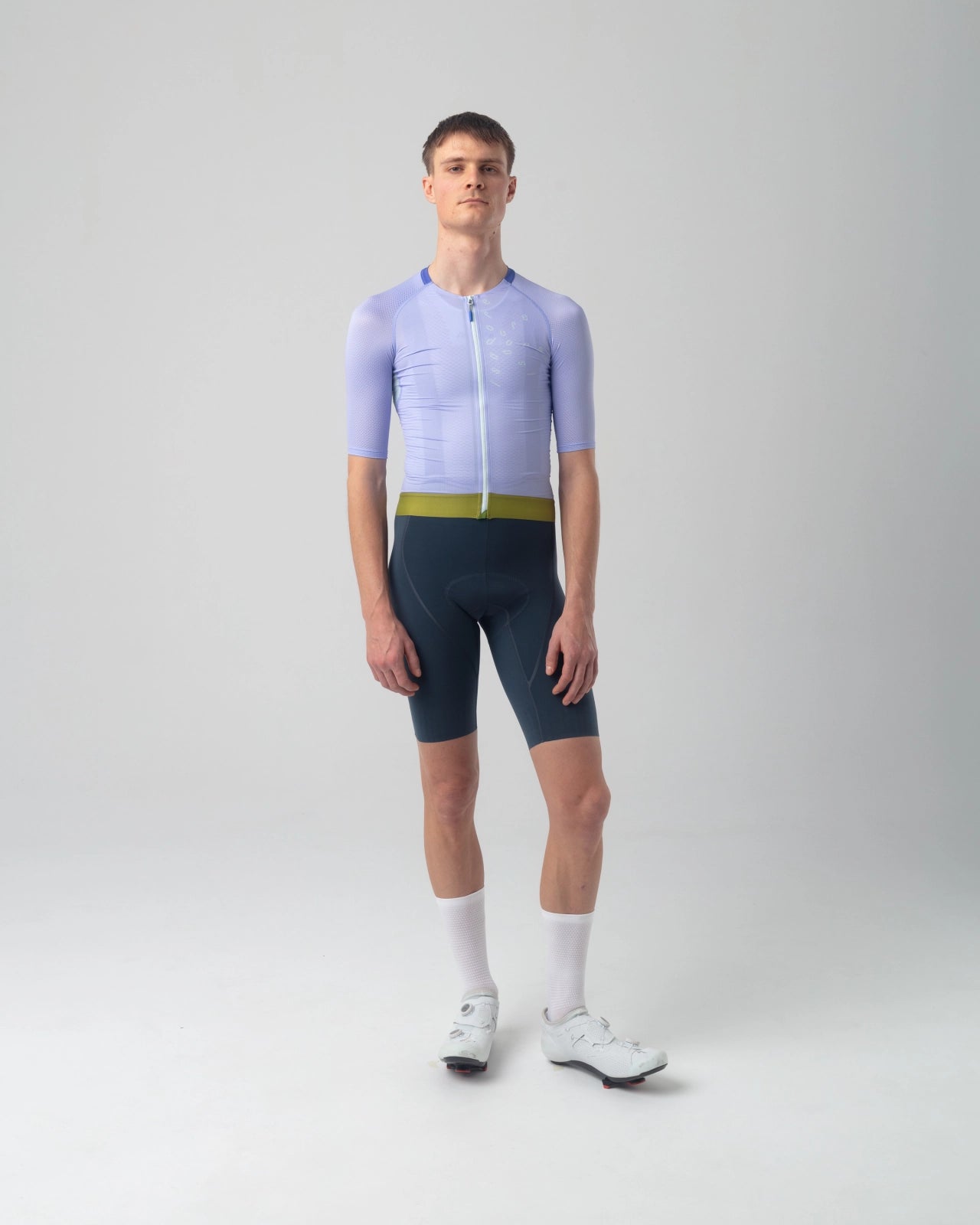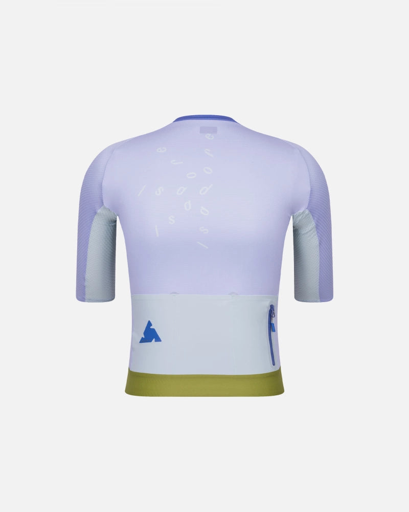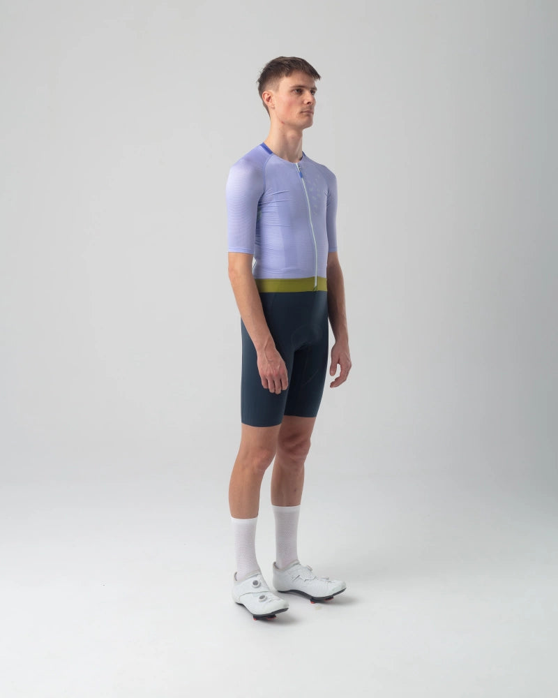 La combinación de tres materiales de malla proporciona una alta transpirabilidad, una evacuación fiable de la humedad y una sensación de segunda piel. Las costuras planas y el cuello pegado en el panel frontal aumentan la comodidad general, y una amplia cinta de silicona mantiene el maillot en su sitio. El corte aerodinámico y el alto nivel de compresión subrayan la búsqueda del máximo rendimiento posible a partir de materiales reciclados. Los tentempiés y los objetos de valor pequeños caben en los tres bolsillos traseros y en un bolsillo adicional con cremallera, y su contenido se puede sacar cómodamente mientras se conduce.