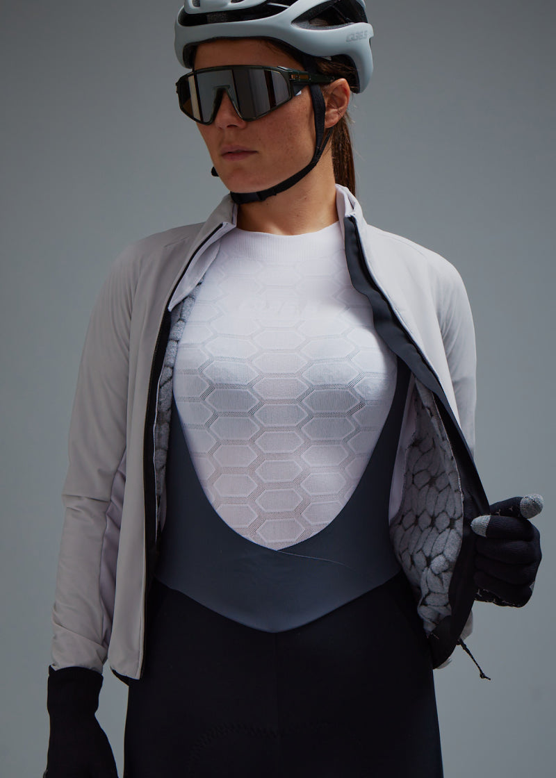 La chaqueta de invierno Gregarius Q36.5 es nuestra reinterpretación de vanguardia de la clásica chaqueta de ciclismo de invierno "soft shell". Nuestra innovadora actualización se impulsa en el uso de una solución de tejido avanzada para las partes más expuestas del cuerpo. Los brazos y el torso se han confeccionado con un tejido 2L con una membrana que está forrada (¡no adherida!) y nuestro aislamiento patentado 3D Air. El resultado es una chaqueta que sigue siendo extremadamente ligera (tanto por el peso como por la sensación en el cuerpo) y presenta un nivel de gestión de la humedad y una relación calidez-peso que antes era inimaginable.